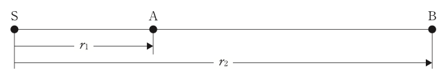 振動源Sからの地点Aまでの距離を\(r_{1}\)(m),振動源Sから地点Bまでの距離を\(r_{2}\)(m),\(r_{2}/r_{1}\)=3とする。地点Bの振動は幾何減衰によって地点Aよりも減衰するが,実体波(幾何減衰係数1)の幾何減衰量とレイリー波(幾何減衰係数0.5)の幾何減衰量は約何dB異なるか。